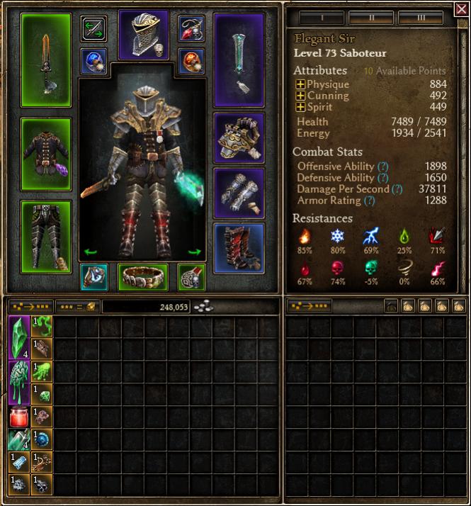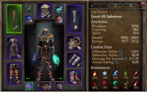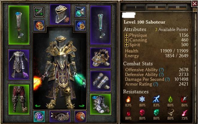 Defense is very strong with maxed flashbang/blastshield, ~1.8k armor 90%+ absorb. ~20% phys resist. and easy swap of mark of divinity without losing much dps should u desire a fail safe proc. with 2.1k DA + chariot as well as nearly 50% chance for enemies to miss due to flashbang+shadowdance. I ran the BoC with 50% chaos resist, didn’t even drop low.