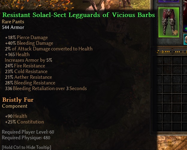 You can use Devil’s Cage Hauberk instead of Chestguard of Justice. Elemental resists can be compensated with augments since Aether and Chaos are generously overcapped. Also for anyone playing only Vanilla NON HC you can sneak in Manticore instead of Watcher for more damage. Watcher is there to give well rounded defense in crucible where we are already doing a lot of damage.