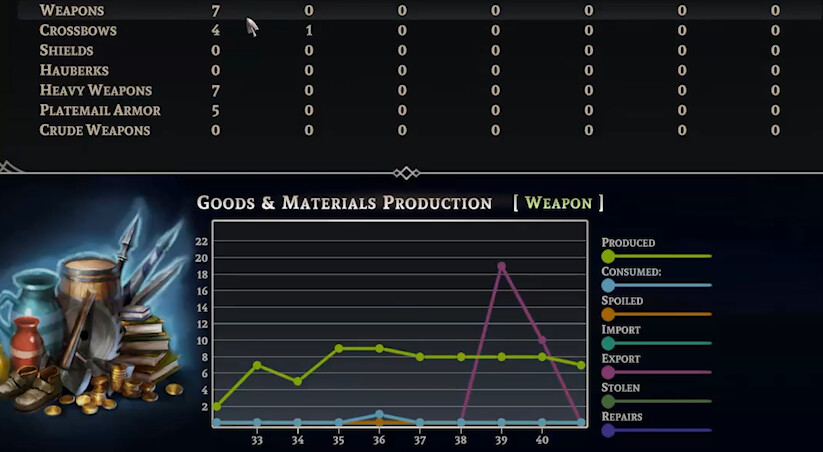 A blacksmith might skip producing a heavy weapon if there aren’t enough resources in the warehouse when it’s time to produce it.