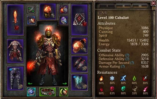 Craft equipment at Arngrim for +% armor or +% physique or kaylon for Freeze/stun res. Try to get as much fire>vit conversion as possible from Lunal’Valgoth’s girdle. Also try to get full 100% conversion from blightlord’s carver, mantle, and Valguur’s Railment.
