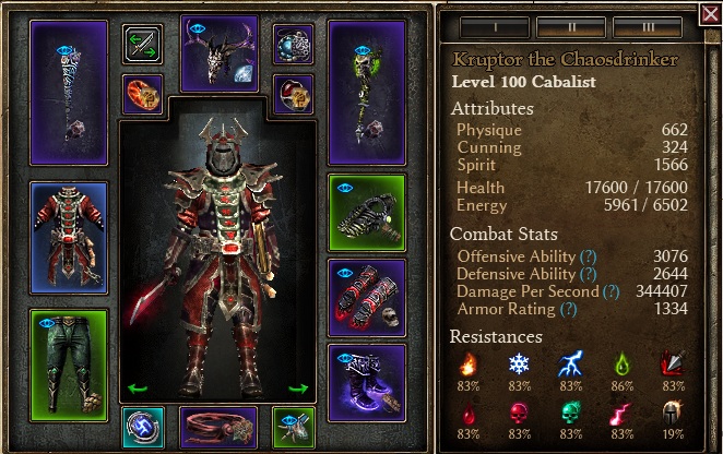 . But this item Mythical Cloth of Unspeakable Invocation - Items - Grim Dawn Item Database says otherwise. An arrogant challenger indeed. As if Crate said: “Come on, try building Chaos DE. You will never succeed!”. Devs did not know one thing though… I like building stupid stuff