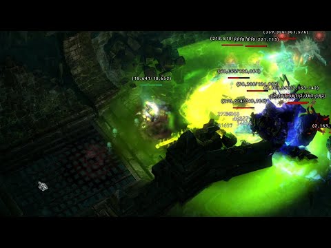 With the survivability aspect solved, and with the matter of Energy sustain settled due to the ability to include Scythe once again, the bois get to come out and play, and do they ever. Between the SoCs, GoEs and Acid Purge there’s a lot happening on the screen and it might be difficult to identify exactly what’s responsible for what but let me assure you, it’s not Acid Purge really, and definitely not SoCs that’s getting the kills. It’s the GoEs, the bois, cleaving their way through hordes with their pseudo-Blade Arc, making whole armies keel over and throw up as those Tainted Eruptions stack up. That said, while the bois’ damage is nice, it actually used to be even better before I had to address the sustain problem. When I still ran Pestilence of Dreeg, had the extra RR from the amulet for a nice slice of extra damage, and I could cap both GoE nodes without the need for Lifegiver Signet. That meant I could run two Shuroth rings, giving me nice % damage, some more flat for Acid Purge and also casting speed to keep the cast rotation nice and snappy and increase that Purge DPS even further. Dropping Pestilence and thus losing the RR and the +1 to Oathkeeper meant I had to put the Signet from some of the older setups back in in order to cap GoE, which cost me a good bit of damage on GoEs as a result. On the various devo setups I’ve tried I could also afford to get that last precious node on the Yugol devotion, and I even had setups that ran Rat or Wretch for even more Acid damage. Unfortunately, those setups couldn’t slot in Scythe and were therefore pretty much unplayable in extended engagements, as the build ran out of energy for Acid Purge channeling even when gulping Energy pots on cooldown. So as good as the GoE damage is now, it used to be a lot better still, both due to higher % Acid and due to more RR from amulet. Then again, it doesn’t fucking matter how good the damage is if you’re not alive to deal it.