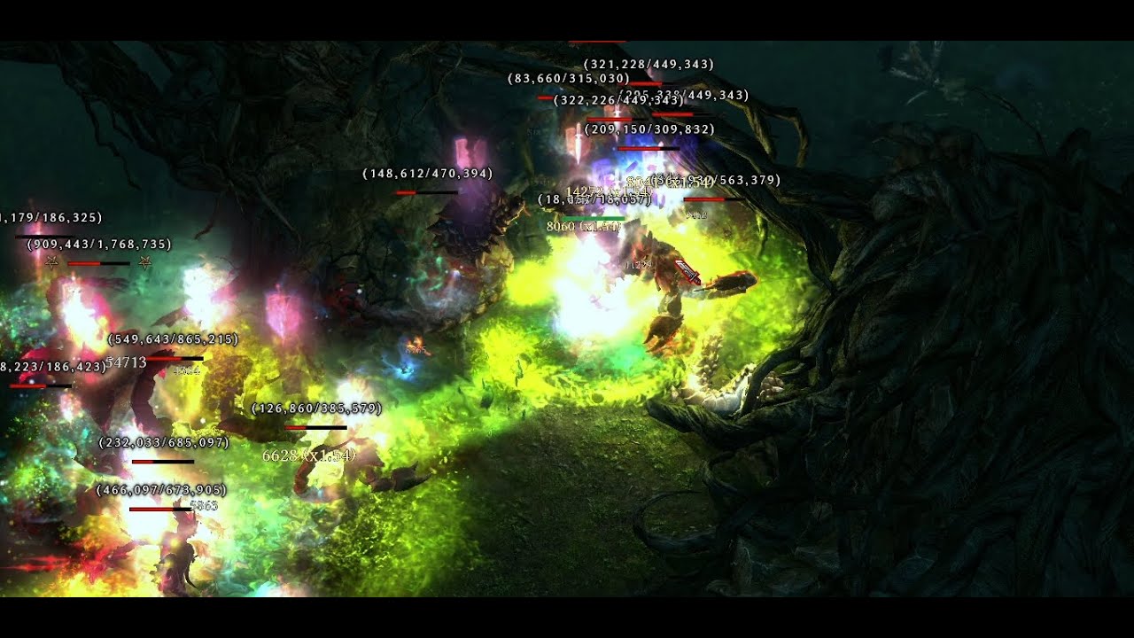 So let’s get down to brass tacks. I can’t tell you why the build stopped getting its health absolutely nuked, but I can tell you why it was getting nuked in the first place. It may look tanky, but it isn’t. It has a nice healthpool for sure but that health can vanish at the speed of light. There’s no % absorb anywhere to protect that health. The only %DR is from the Yugol devotion, which, while reliable, applies in a fairly small area. If you’re fighting a larger group of enemies, with a lot of melee attackers trying to surround and with midrange casters and long range shooters in the mix, chances are a good 70 % of those enemies are dealing their full damage to you cause the blood pools aren’t radiating their DR that far. The build is also very, very melee. There’s no leechable reach beyond Scorpion Sting from the devo, Eye of Shuroth from the ring and Venomspines from the boots, so if a thing isn’t in your immediate melee range, you’re not really damaging it, at least not through your %WD component, so you’re not leeching from it. Anything you really mean to kill you need to get close to. If you can’t tank a boss, you’re done. In terms of AoE, while pretty much every devo proc is doing something to help on that front, the only real horde clearing capabilities come from the random procs of Belgo Shears, Whirling Death and Smite.