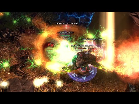 Getting to the performance proper, it’s kinda glorious. While VM has its quirks it’s also undeniably effective and also a bit OP. With VM having this short of a cooldown, melee enemies will be spending most of their time just trying to catch up with you as you burn them to cinders. The amount of time someone like Fabius gets to actually just land autoattacks is pretty miniscule which serves as a massive damage mitigation source. VM also serves as the ideal complement to CT, even more than I originally envisioned. Initially VM was meant to just be a way to close the distance, but it was clear to me from the outset that CT might not be sufficient to perform the damage duties. Nova skills rarely are. These skills excel through their outstanding AoE coverage. They rarely also do the job on single target. VM does though. Between the hefty amount of up-front damage and the stacking ground effect, VM picks up perfectly where CT leaves off. CT, in the meantime, does an outstanding job on clear. The two put together ensure the build really doesn’t have a weak point, it does great on both. It’s not really the skills themselves that leave gaps, but the damage type + mastery combo. With Arcanist having no RR, we’re left with a Fire build that is stuck using a single on-tree RR source. While that doesn’t have a noticable effect on the damage output in general circumstances, some of the more resistant enemies do get to hang around a little longer than one might like. Surprisingly it’s not so much the likes of Gargabol, Shar’Zul or Grava that slow the build down, but Fabius and Iron Maiden. They’re not glacially slow by any means, but the slowdown is definitely noticable, particularly in the case of Iron Maiden. Her high DA combined with our low-ish OA means there won’t be much critting happening, in fact it’s more likely there’ll be some missing, even with diligent application of Crushing Verdict and Clarity of Purpose. Since the build isn’t going for Divine Mandate or Kyzogg’s Skull, the absence of crit isn’t that painful cause there’s next to no crit damage going around anyway. Still, every little bit helps, and occasional misses are definitely not particularly welcome. As a fun little side note, due to the low crit damage, if you get the Weakened mutator, crits just stop appearing on screen cause the character’s crit multiplier goes into the negative