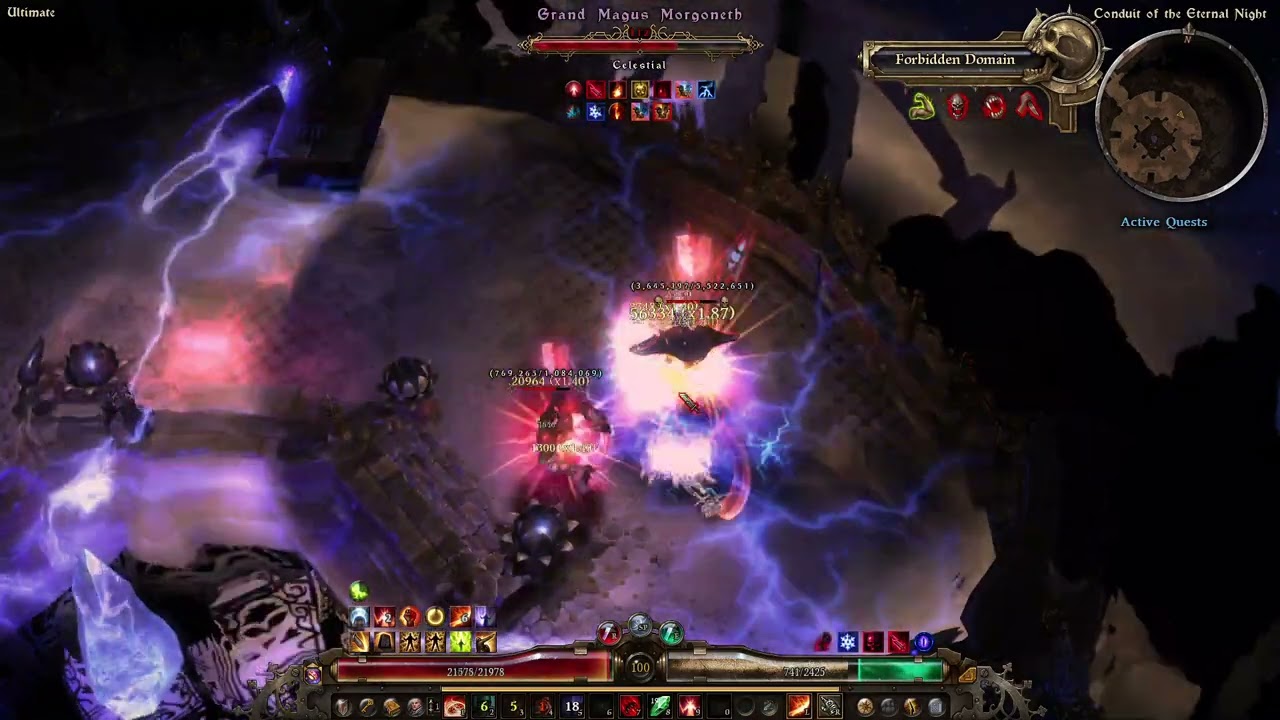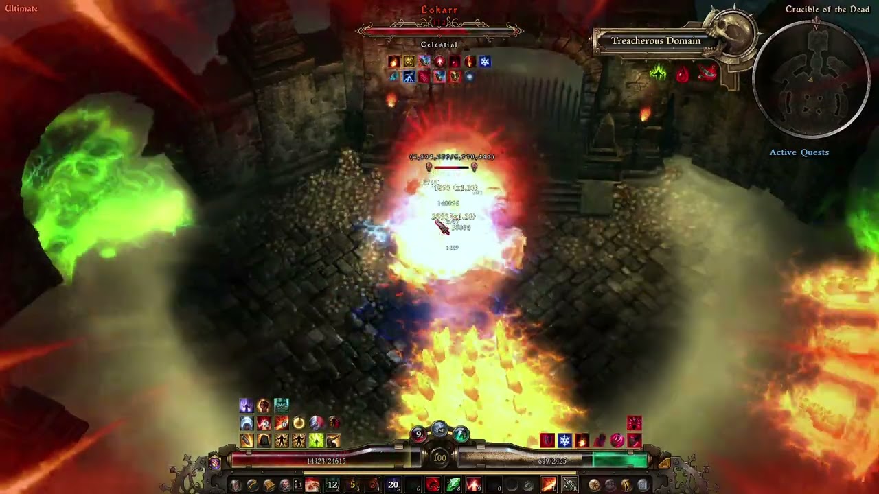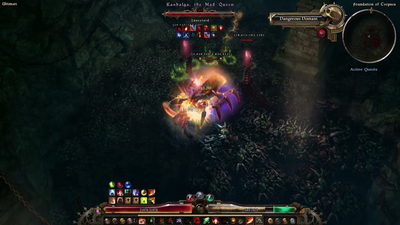 About Resistance Reduction. Total amount is ~88% (-25% from GoE aura, -8% from Combustion Band proc, -23% from Solael’s Witchblade constellation and flat 32 from Rhowan’s Crown constellation) plus 20% from Viper constellation, so it may vary. Not big numbers, most Fire-resistant enemies take some time to beat (Maiden, Grava, Fabius etc), but they are not that dangerous, just somewhat annoying. No particular problems with other Nemeses.