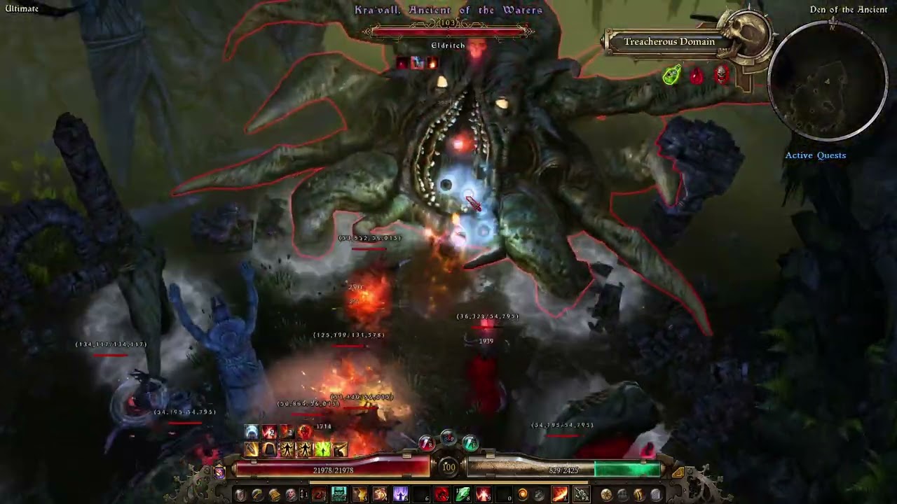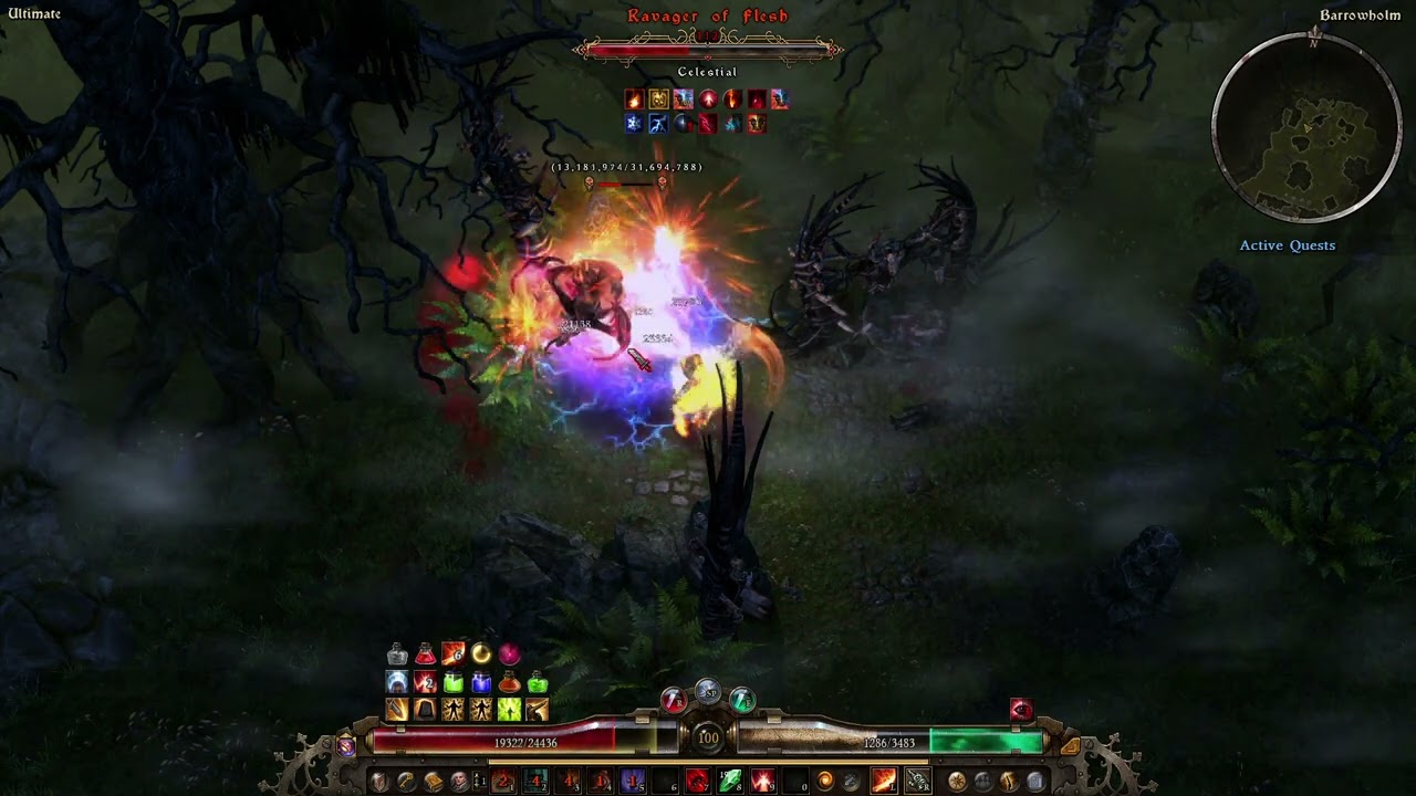 Ravager of Flesh (potions are in the video, no Aether Clusters, occasional healpots, mostly facetank with evading on sunder (is not needed much, just in case) and some kiting out of blood pools. Energy Leech from that boss is enormous, keep an eye on your mana bar).