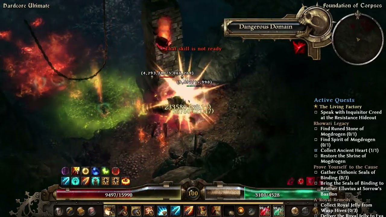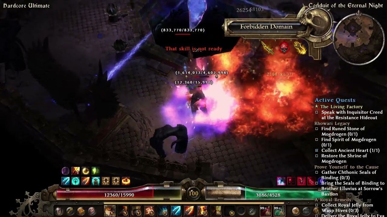 Time to start elite difficulty mode. Remember to do Totem events to get Blueprints and stronger gear. Be careful with your resistances. Max out Maiven’s Sphere of Protection and complete Eldritch fire on devotions (bind its proc to BwC and use Thermite Mine or Flashbang for the bat proc). -