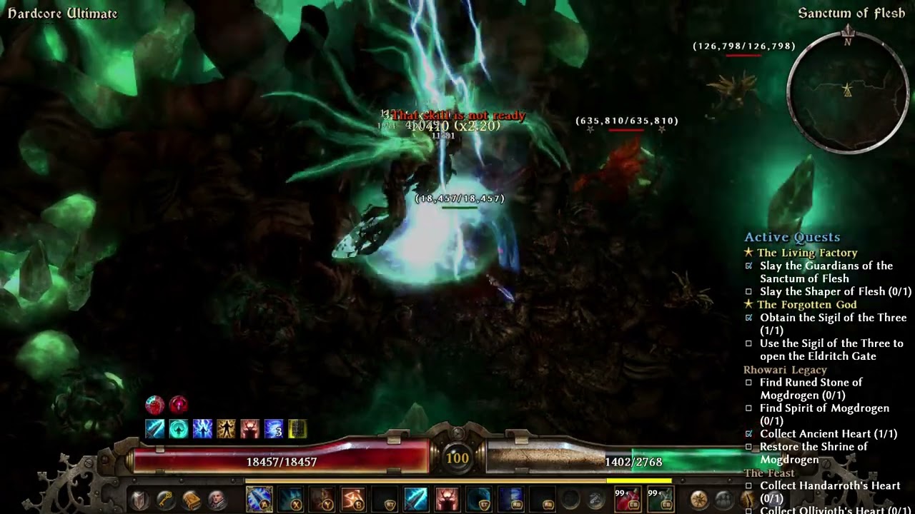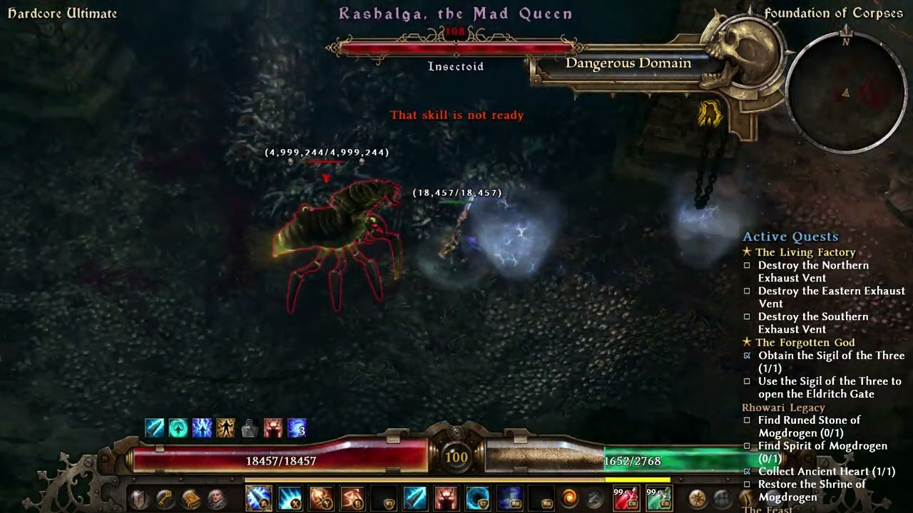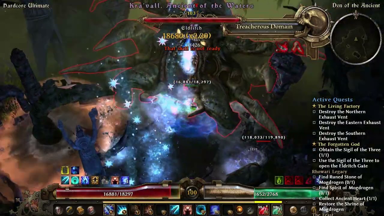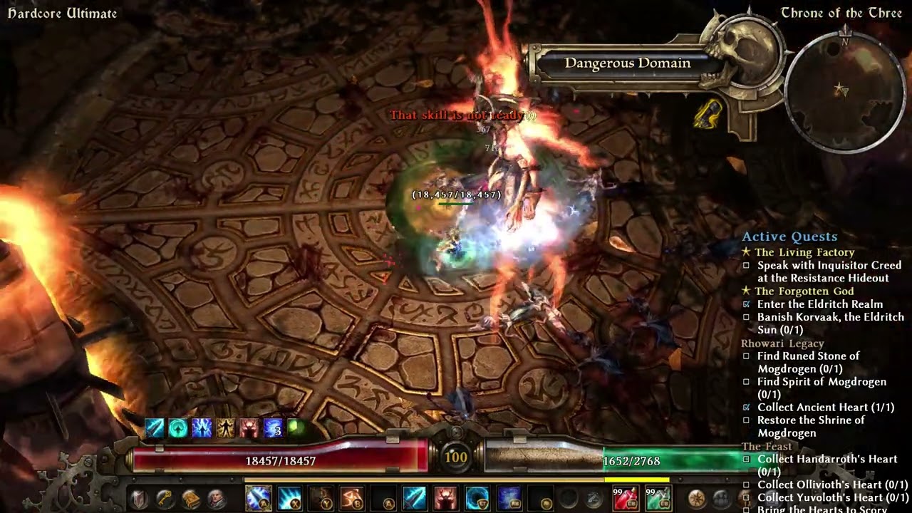 Time to start the ultimate difficulty, maxed out Overload and Inner Focus for OA/Aether Resist, after that ,started to max out all of Primal Strike nodes. Remember to do all the totem events you can (clean the area first, be careful), and to sell your loot! Don’t forget to buy factions boosters to increase your reputation gain with the factions.