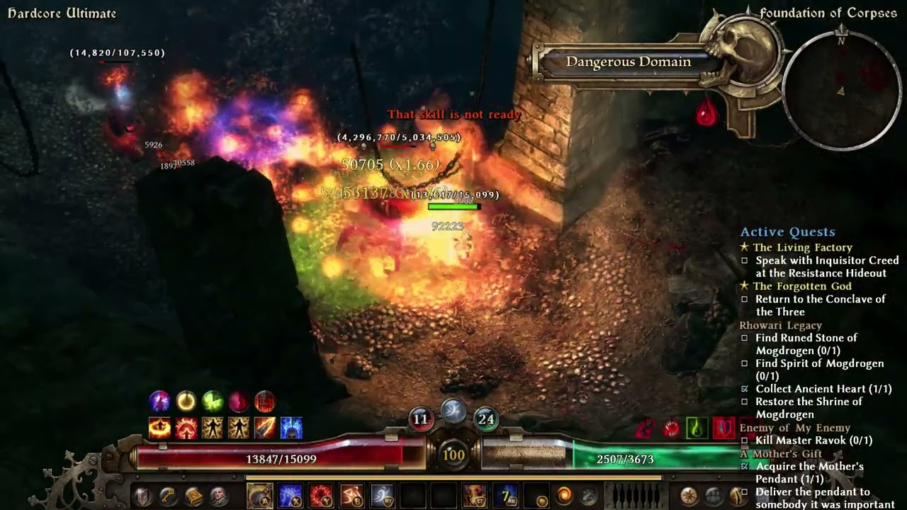 Max out RoK and Ignition. Remember to upgrade your gear and to check your resistances. On devotions, finish Solael’s witchblade (bind its proc to WoP and bind the Rhowan’s crown proc to RoK), Behemoth and Ulzuin Torch’s (bind its proc to thermite mine)