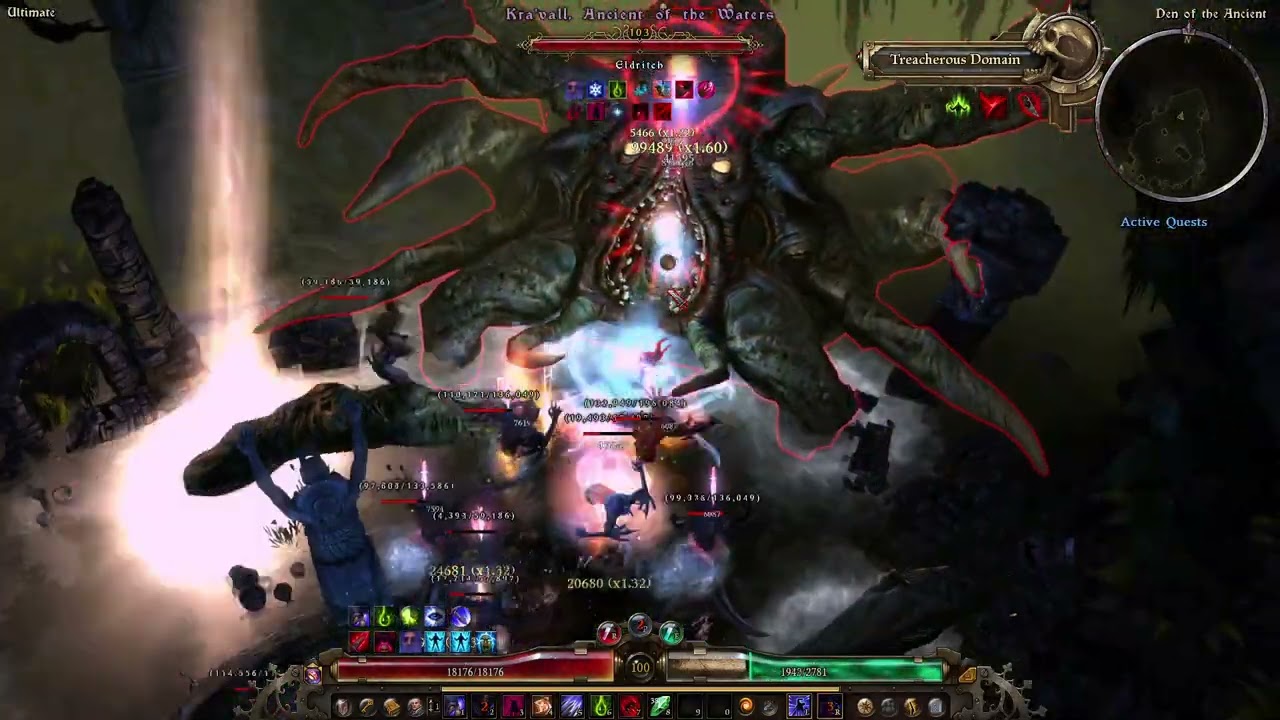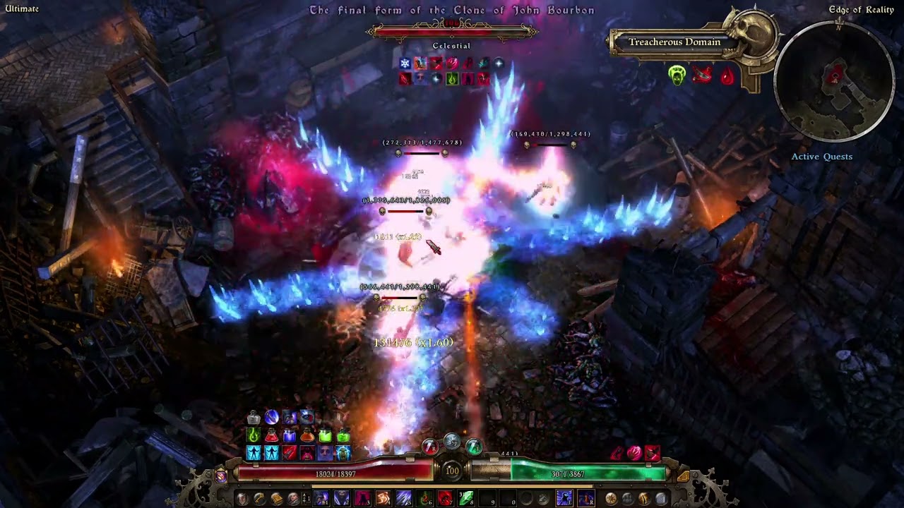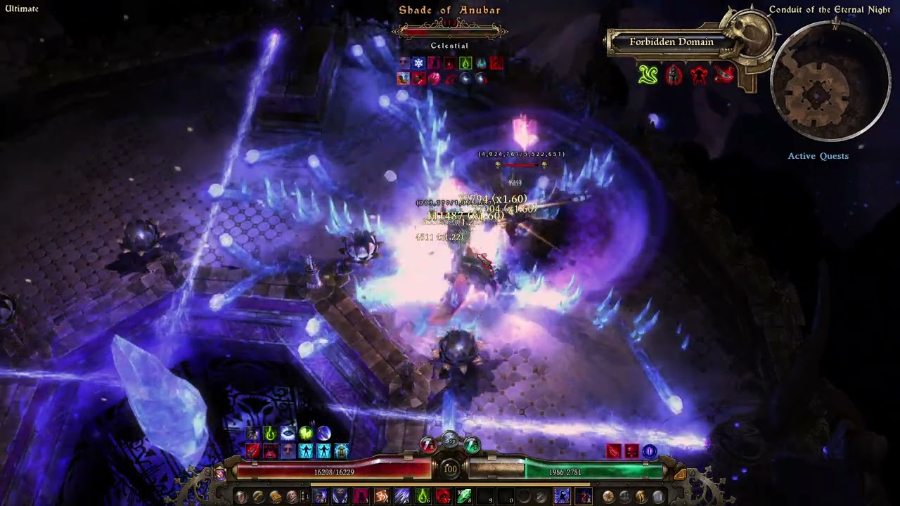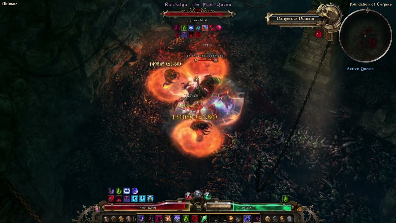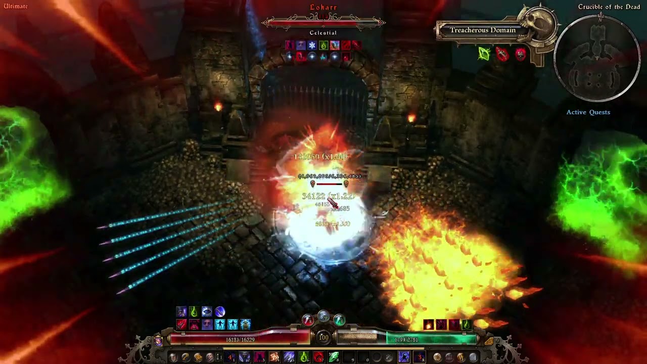 About Resistance Reduction. Total amount is ~103% (-31% from Night’s Chill modifier of VoS, -25% from Vulnerability modifier of CoF, -23% from Murmur constellation and flat 24 from Revenant constellation) plus 20% from Viper constellation, so it may vary. Enough for most cases. Of course, some Cold-resistant Nemeses like Moosi, Kuba, Fabius can take some time to kill, but that is it, nothing more dangerous. Heavy Physical fighters can land big hits sometimes (that is why I complained about low Armor), but you can recover quickly enough. Energy potions needed from time to time, especially if you do not have Energy regen affixes like Insight on my helmet.