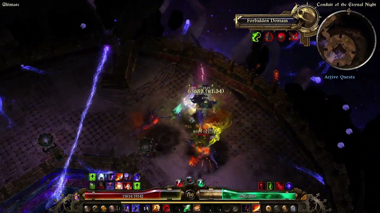 While attacking, we are triggering Guardian’s Gaze from the “Eye of the Guardian” devotion, which provides floating orbs around us, leeching life to heal incoming damage.