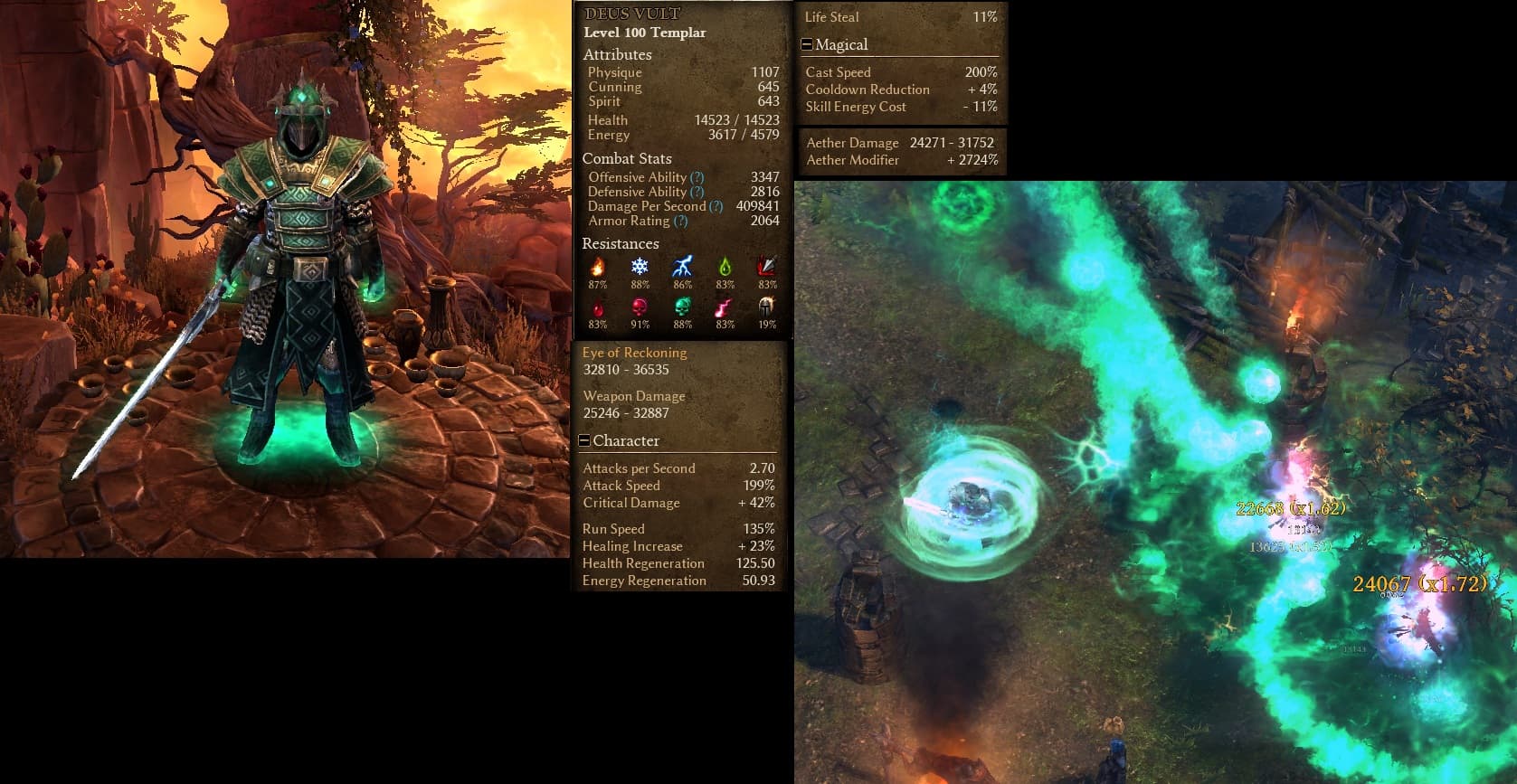 I like it because it combines some of the joys of GD for me which is essentially meme builds that use specific modifiers to promote weird class combos. The essential item for this build is Lucius’ Bladearm which within the Templar class is an absolute powerhouse, and the conduit which flavours EOR with a pleasant aether cyan.
