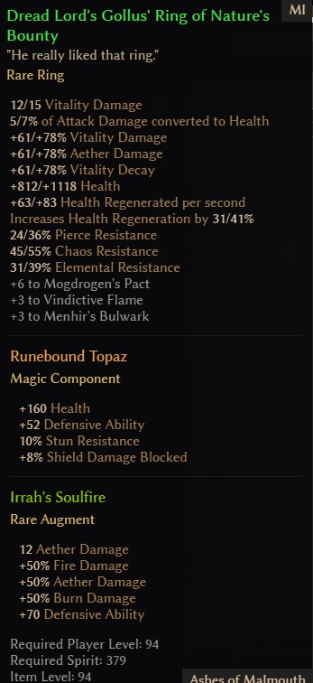 Thanks your reply and insights! Concerning the ring, that Gollus’ is obviously very good (any dread lords) but hell to farm and feels bad on the other hand to give up of any of those rings