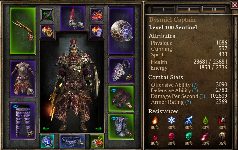 For beginners I also made a budget variant that requires only the Bysmiel and Malmouth factions at revered status in addition to more easy drops, including items that can have downgrades drop at low levels. The budget build should be good to up to around SR26.