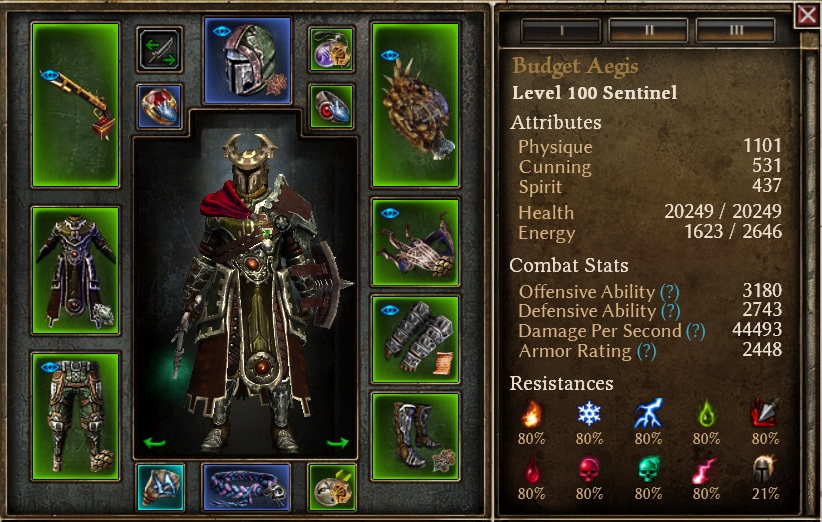 This is Hybrid Pet build for using Aegis of Menhir as main attack with Hellhound and Stormraven pets. Damage type is fire for both player and pets. The endgame version of the build will wear the full Virtue legendary set.