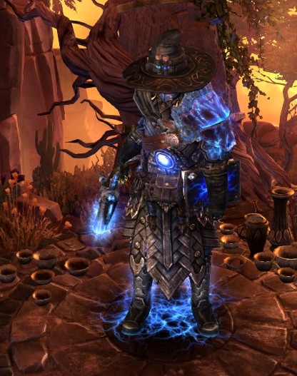 The magic happens with the Arcanum Electrollis “storm binding” skill buffing the overall lightning resist reduction with a whooping -18%. Making up for the loss of cdr and damage of the full trozan set.