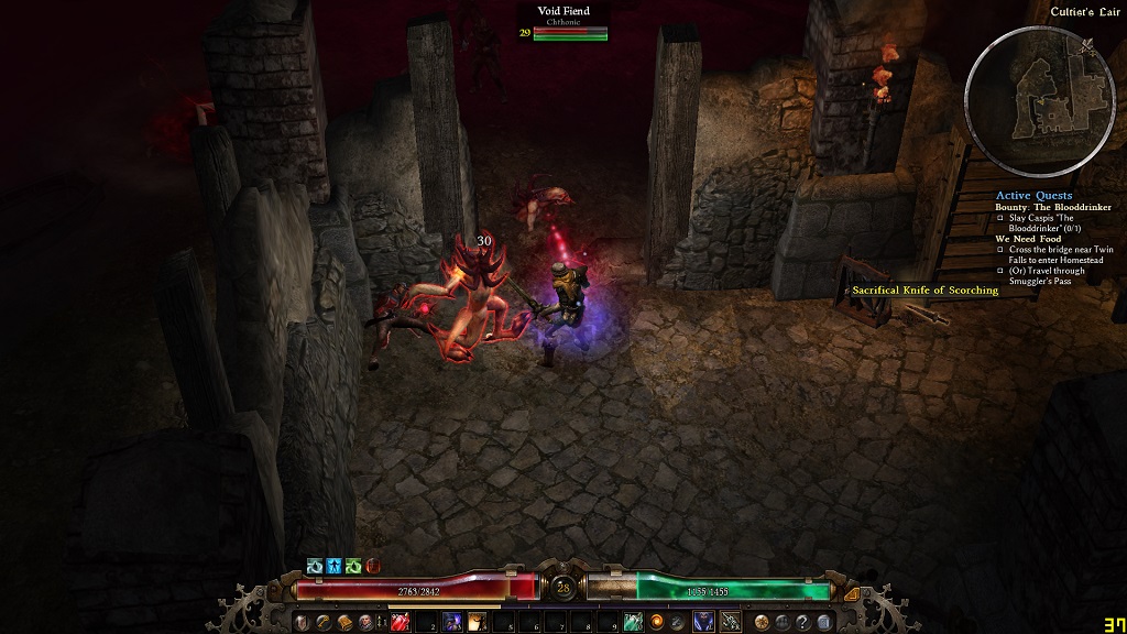 - Damage over time effects (ex. Poison, Bleed, etc.) now stack with diminishing returns when applied through unique sources. For example: If you apply Poison through Eye of Dreeg, then hit an enemy with a poisoned weapon, both will now deal damage, but the weaker DoT will be reduced. The stacking ratio is as follows: 100%, 50%, 25%, 12.5%, 0% with the most powerful DoT dealing 100% damage and each subsequently weaker DoT dealing less.
