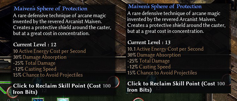 - Maiven’s Sphere of Protection: Conversion removed, % Total damage penalty is now fixed at -25% at all ranks. Added a Casting Speed penalty that scales down with rank.