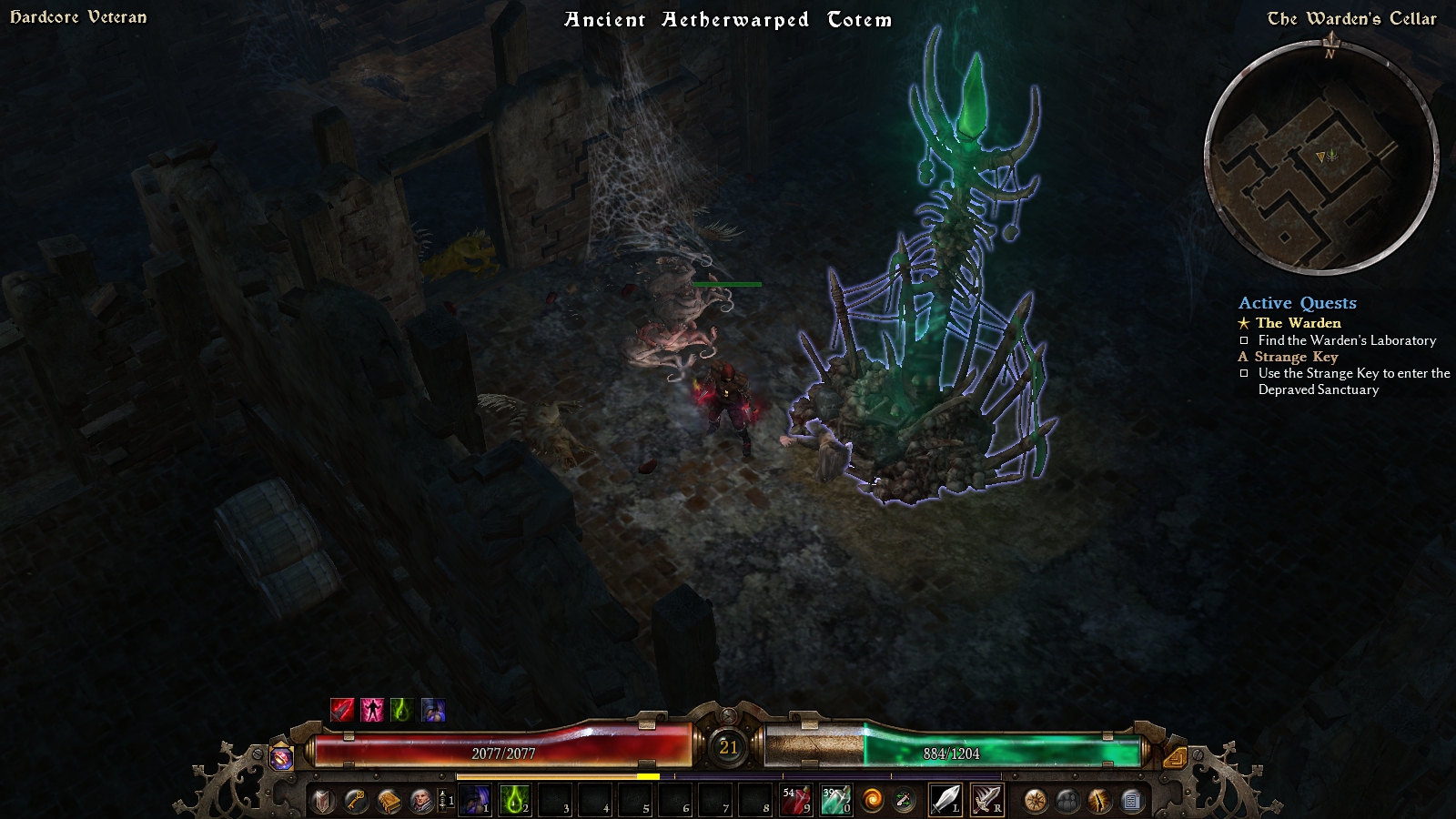 Yesterday I reached lvl 21 just when I entered warden cellar. Then Of course I activated Ancient totem which spawned two aetherial amalgamations… after both of them hit me at the same time I decided to run away and finish for that night that was very close to death and I need to slow down and probably get appropriate components everywhere which I didn’t up to now because I thought I don’t need them yet.