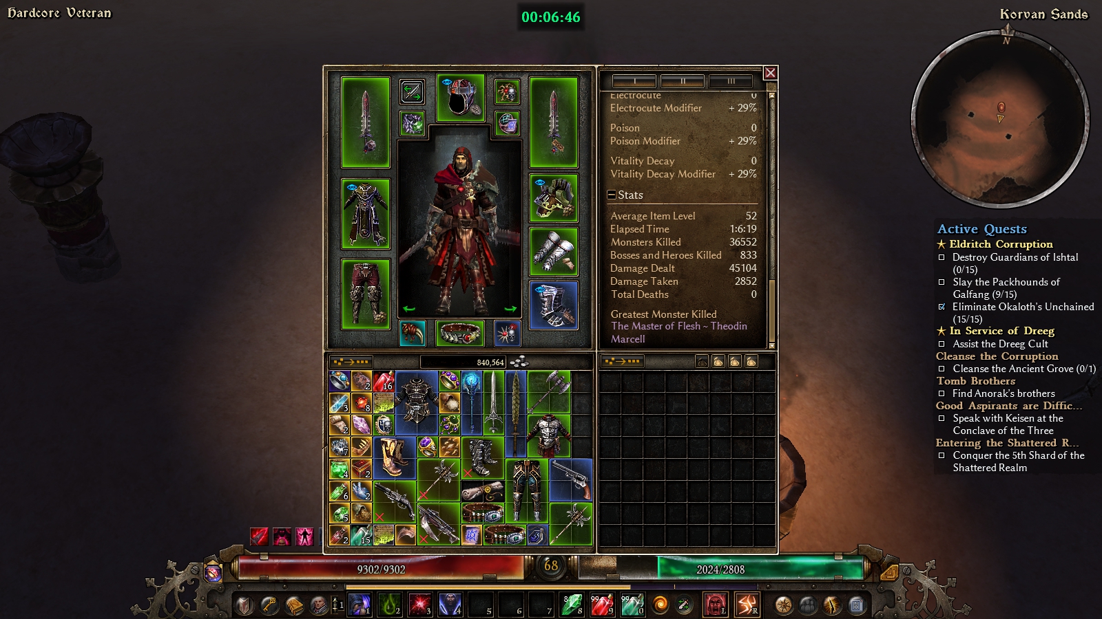 That took me 60 hours on this char with lots of farming but it has been pure pleasure.