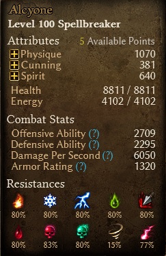 My problems now are that I’m struggling to keep my resistances up, but most worrying, the Health bar is very ugly. There are so many experienced players here, and I would really appreciate any suggestions to improve survival ability of This Spellbreaker.