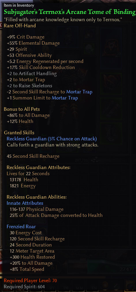 Oh yeah, I found the perfect item for my Necro Demo mortar + pets build dreams