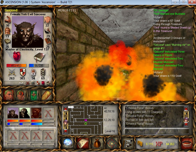 Im running right now 2 Gaint Warriors/Explorers Ogre Warrior/thief and punny elfish girl lolodin/magi/sorc. Im on my holy war against dwarfes ATM, genociding poor midgets for exp and lolz. Killed Slave driver and Norns, got Goblin head.