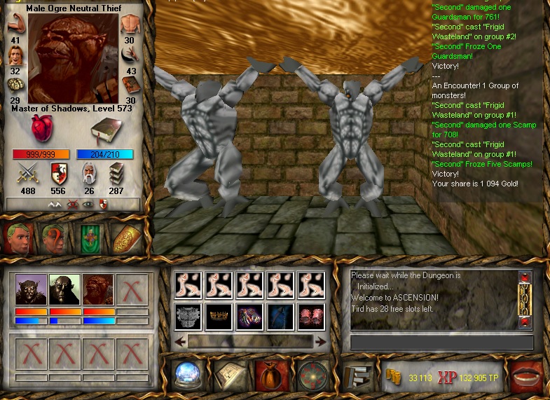 Its a hardcore grind-filled dungeon crawler from 1999 written on visual basic. 30 dungeons levels filled with nasty monsters that can paralyze, drain stats and health permanently, destroy items, steal, turn to stone and do other fun stuff with PC. Lots of interesting puzzles on levels. Awesome exploarations =) max character lvl is 999 per guild, so you can grind for years