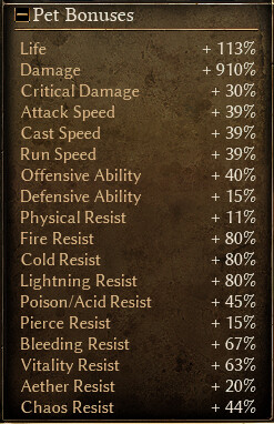 I actually got all of these items during this run. But keep in mind, that even with Revenant, Crab/Hound, and the temp summons, they all get insta dead on Veteran. And it could still work if done in softcore and you are ok with an occasional RIP here and there. Problem is, to get all those pet bonuses on gear and devos AND 400 spirit for offhand (even with 10% reduction from armor and many items with +spirit), you become too glassy. To put things in perspective. At around level 40, a skele hero hit me for 5k damage despite having maxed out res, decent DA, shield. So, the hit, activated the turtle shell which was sitting at 2500, and burned through it, and I only survived because of high regen which was around 500-600 and somehow offset the additional crazy bleed damage (80% bleed res). If you get hit like this on a pet gear it’s a RIP. Now of course, you could say that as a pet char you are supposed to avoid getting hit, but that’s not going to be possible in 100% situations due to squishy pets. Too squishy up to level 60 ish.