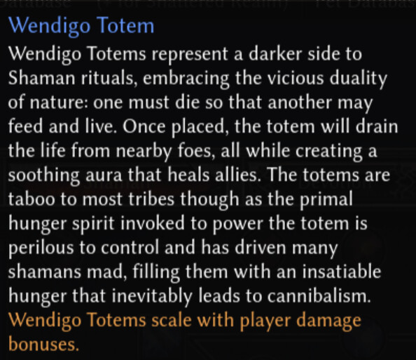 Perhaps these could be locked behind player choices. I understand that character development is not really a thing in this type of ARPG, but gradually becoming corrupted and insane is one of my favorite themes in video games. Speaking of which, there could also be (mastery-specific?) quest-chains for things like shamans descending into cannibalism (or not, and siding with Ultos or something).