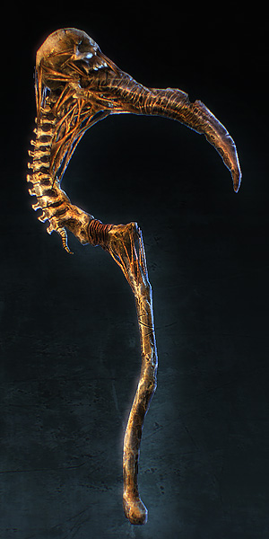 “Rumored to have once been wielded by Uroboruuk himself, this weapon 's edge traps souls with the slightest touch.”