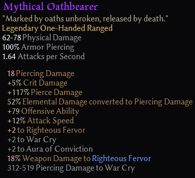 I have a question - why gun like Oathbearer provides such skill mod for Warcry? We can’t combine it with the mace and hence there is no use for War Cry. I really like the idea of War Cry focused on piercing damage but don’t see any opportunities to support it as a good attack skill.