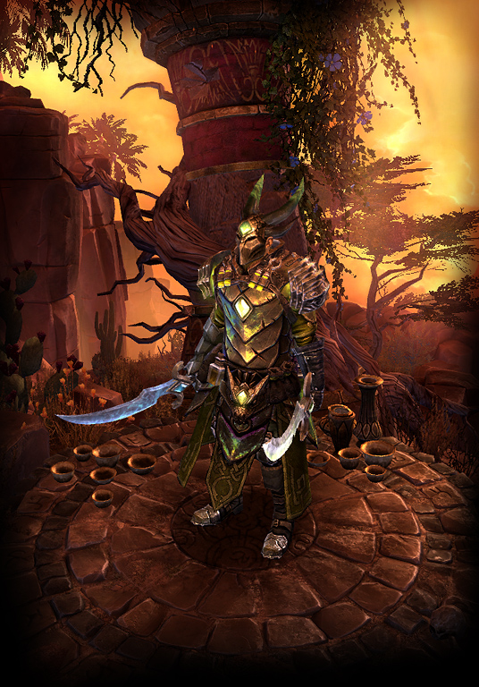 With blades that carry an acidic bite, you will spin to win and Shadow Strike your way into the fray in style! Empower your attacks with the Blood of Dreeg, should you choose.