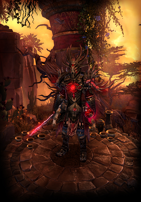Tainted by the powers of the void, this mighty plate teems with sinister energies. Aegis is forever changed and the Flames of Ignaffar bristle with chthonic power. Finish off any fleeing foes with a devastating Doom Bolt.