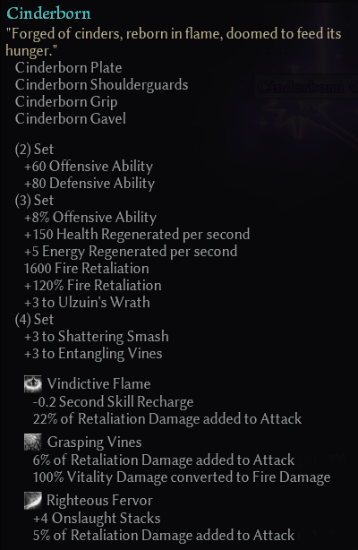 If you have ever wanted to look and fight like a furious fire elemental, this is the set for you. The very vines you conjure will ignite with hungry flames.