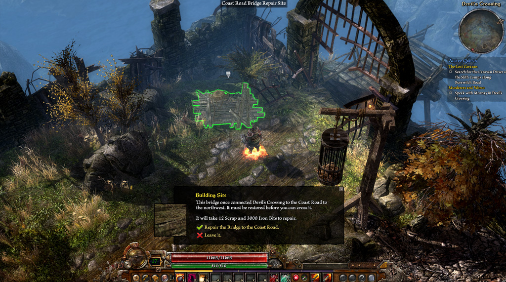 To that end, Bourbon sends you to speak to Barnabas about repairing the bridge up to the northwest. Beyond it is the Coast Road, once a heavily traveled route between Homestead and Burrwitch. Homestead was the key provider of foodstuffs to the region and is now Devil’s Crossing’s only hope of sustainable crops.
