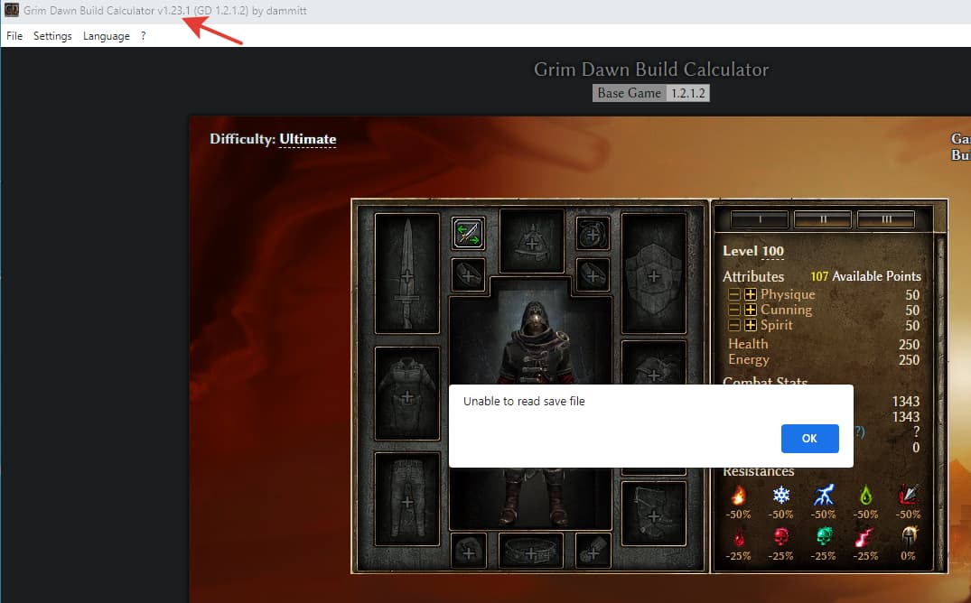 not sure if i ever loaded from a save file with gdcalc 1.22 but i get āunable to read save fileā