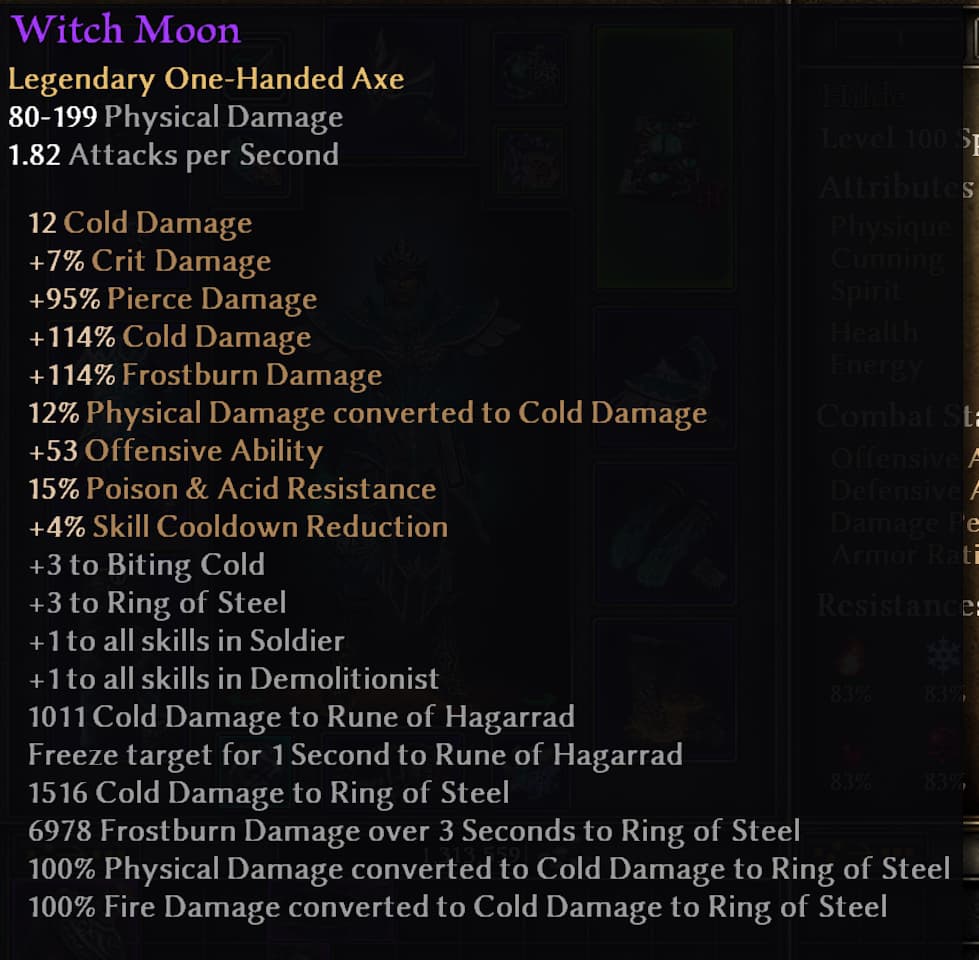 I noticed the items arenât up to date with the latest patch. I got very confused to see Witch Moon had physical to elemental: Witch Moon - Items - Grim Dawn Item Database