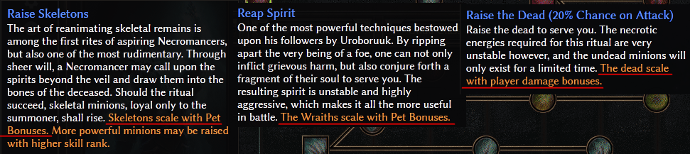 To clarify the discussion for Ressin : here’s a pic with descriptions from both types of pets. First 2 are Skeletons and Reap Spirit necromancer skills. Last one is Revenant devotion. The first 2 are regular pets while the last one is the so-called “player scaled pet”.