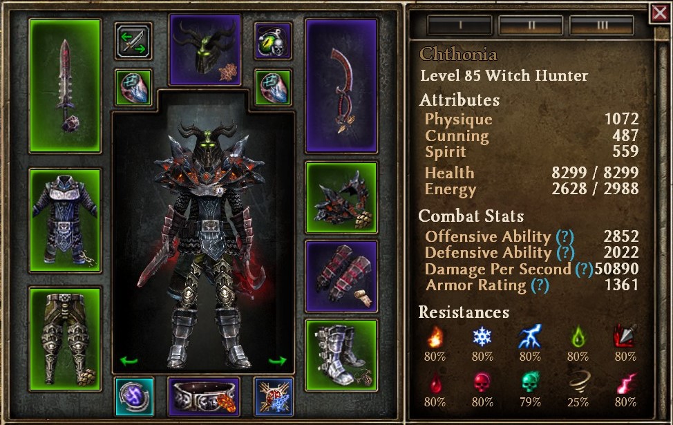 - Low stun resistance (see my notes on Iron Maiden below to fix this). Everything else is about capped except Aether.