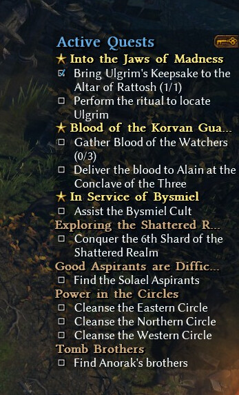 Hey so just got the game about a week ago, been playing a lot and so far once I’ve done the wardens dungeon I head to conclave of the three and do a few shattered realms, did that long quest for the eye as well. I have a few chars about 35 now but love making new ones to test skills and stuff… ANYWAYS I was wondering which areas and when? I’m not sure if I’ve somehow missed a major story line quest and am lacking direction or if there isn’t one?