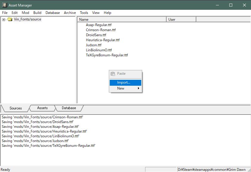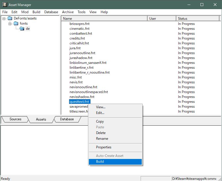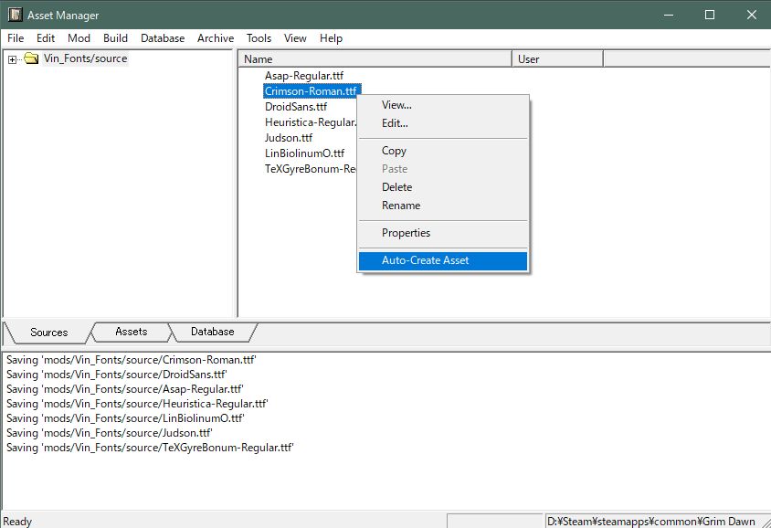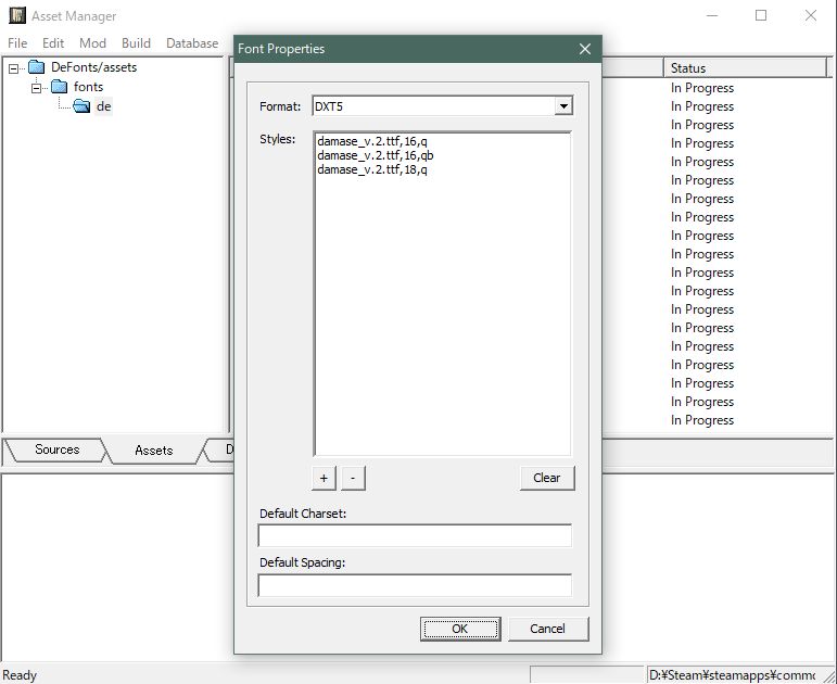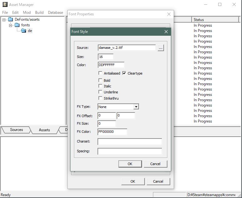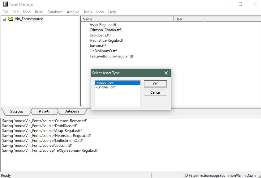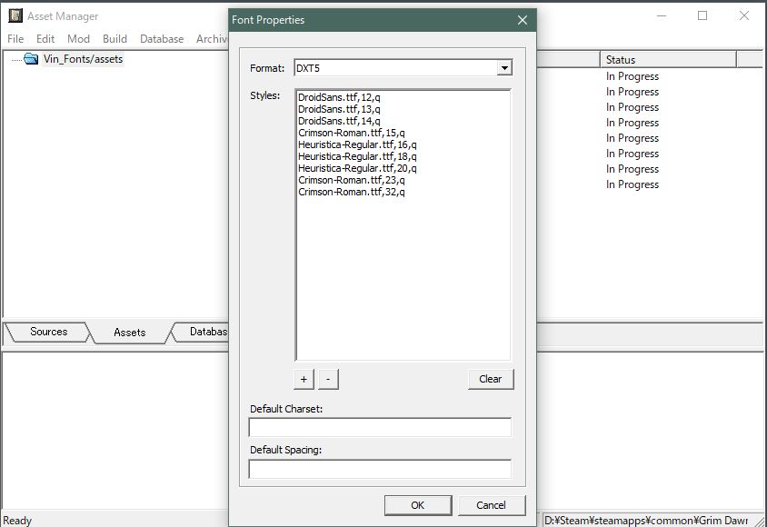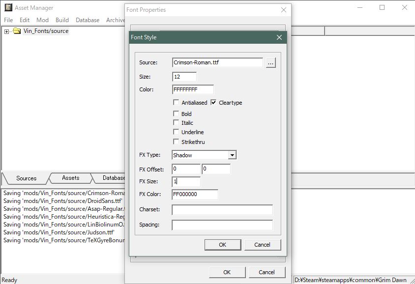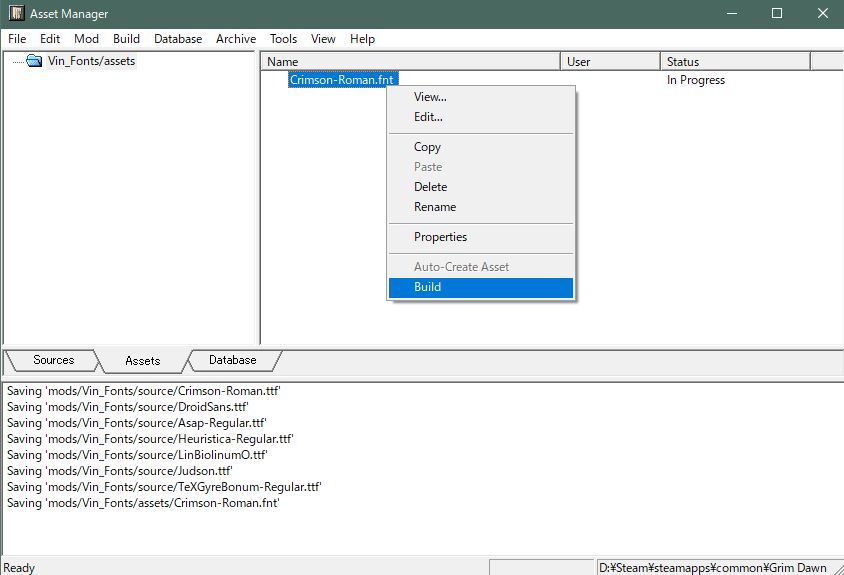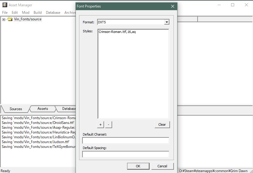 4. Finally, if you do Build, the font (*.fnt) is created in Grim Dawn\mods\defonts\resources\fonts\de.