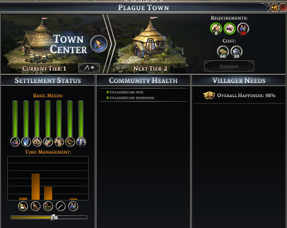Town Centre isn’t up to t2 yet, don’t have enough villagers to do it.