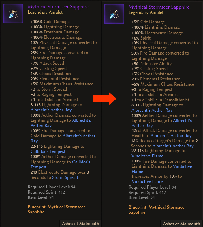 - 50% fire -> lightning is way too much as for a craftable amulet, should not be increased.