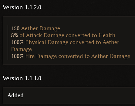 Change: Summon Guardian of Empyrion’s target area in terms of resistance from Aether and Chaos considering Bonemonger has it to replace it with Pierce and Bleed