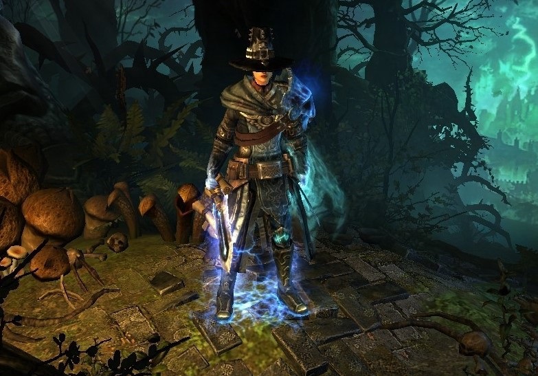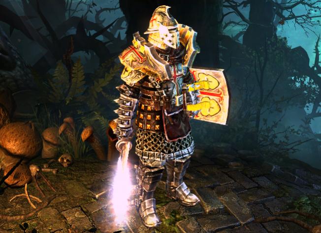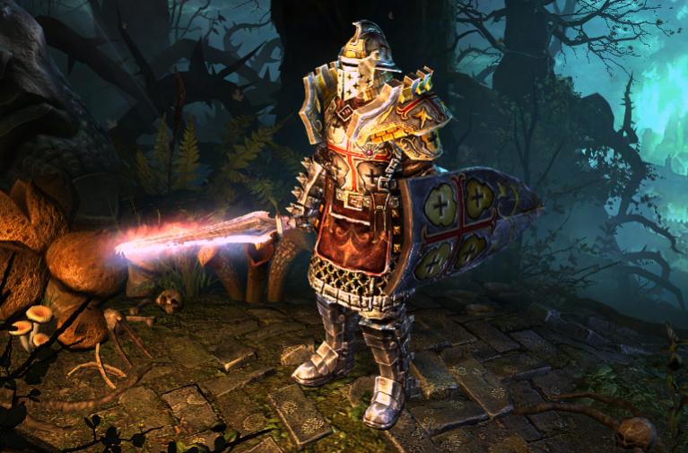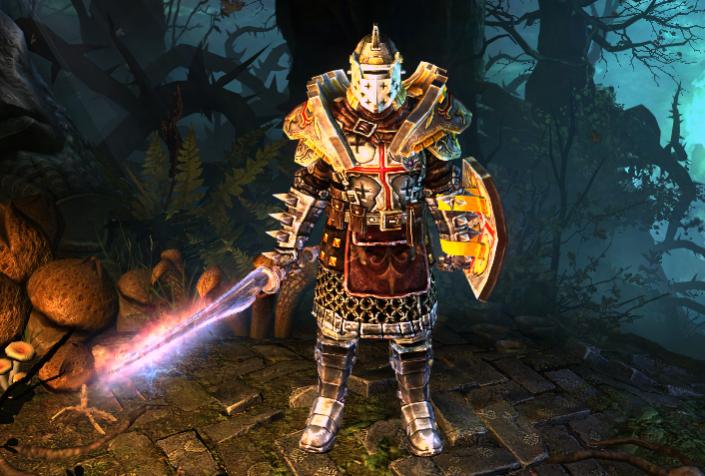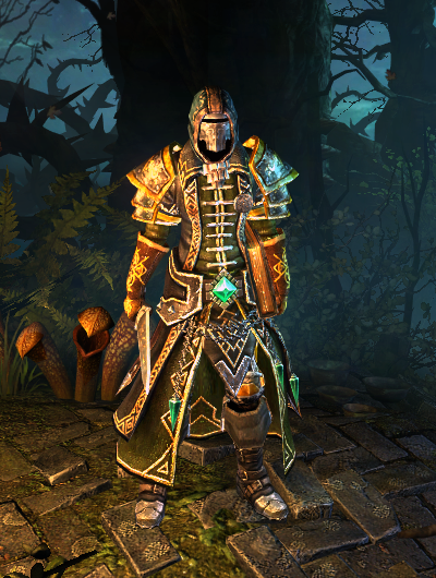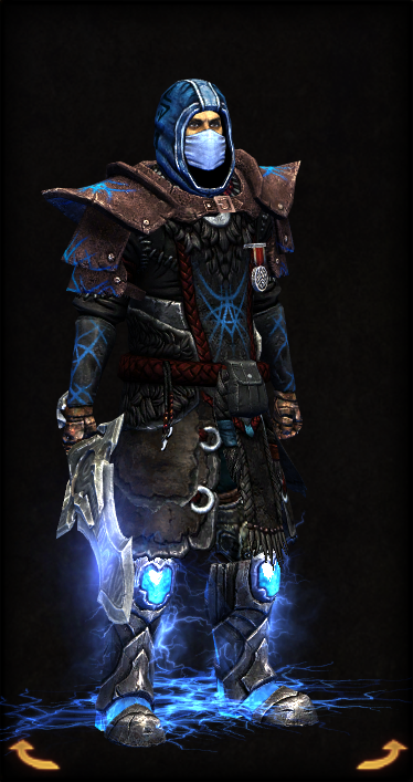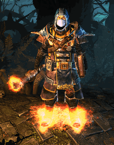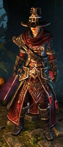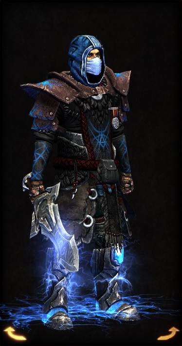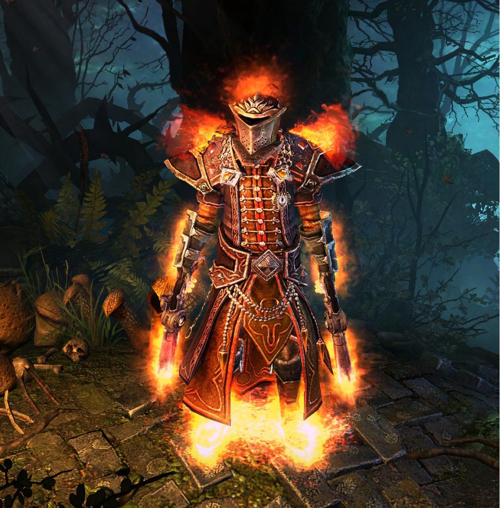 Wearing Malmouth gear, blackflame head piece, voidsteel gauntlets and Fang of Chtons. He is a beast of man…a true chaotic witch hunter.