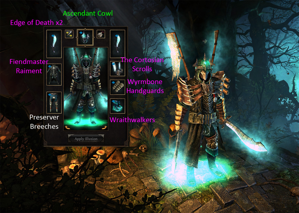 This guy is a dual pistol Vindicator with some Dagallon armor and exonerator pistol and stuff. Using savagery, wind devils and kills stuff fast. Quite a gunner to keep an eye on. Mostly because he’s bit of an Ultos maniac.