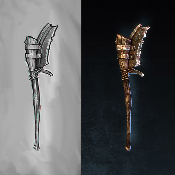 As many of you know, Cairn is a war-torn world with very limited resources. In as much, we’ve tried to capture a sense of improvised necessity and desperation in the earlier tiers of our common weapon classes: An old farm scythe strapped on a large stick becomes a new axe, while rusty old gears from some forgotten contraption has been reincarnated as a sturdy bashing stick. After several tiers of cobbled, improvised killing devices, you will start to see the remnants of greater weapons from the ages past. These rare weapons are coveted most of all, for very few now possess the skill or knowledge to recreate their glorious craftsmanship.