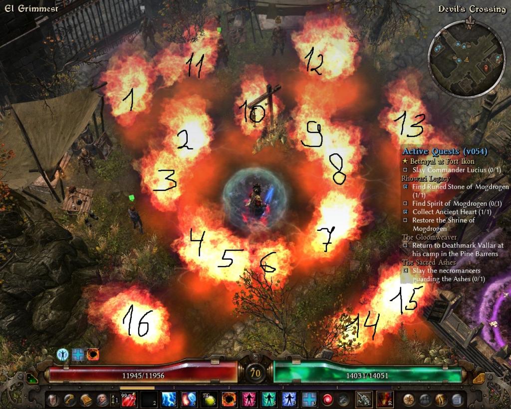 [li]Stratagem of the Hell Hunter - Passive buff that grants chance of terrify, Acid -> Vitality conversion, and a proc on-attack that creates a very large ring of flame around the player.[/li]