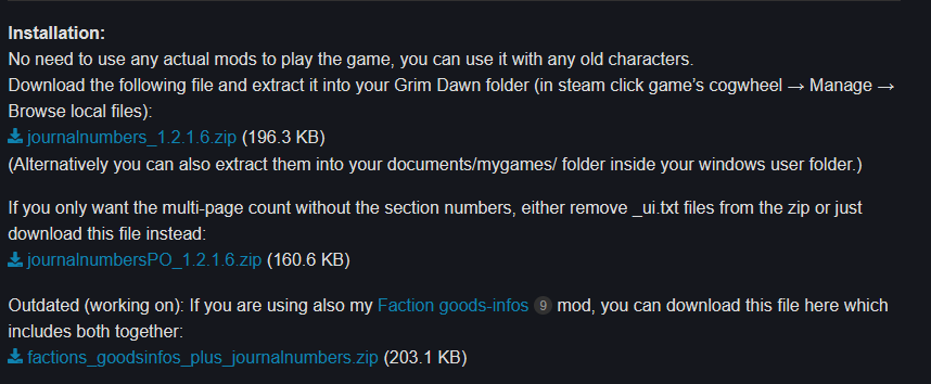 Additionally also adds a number to the note sections showing how many notes total of this section there are in Grim Dawn.
